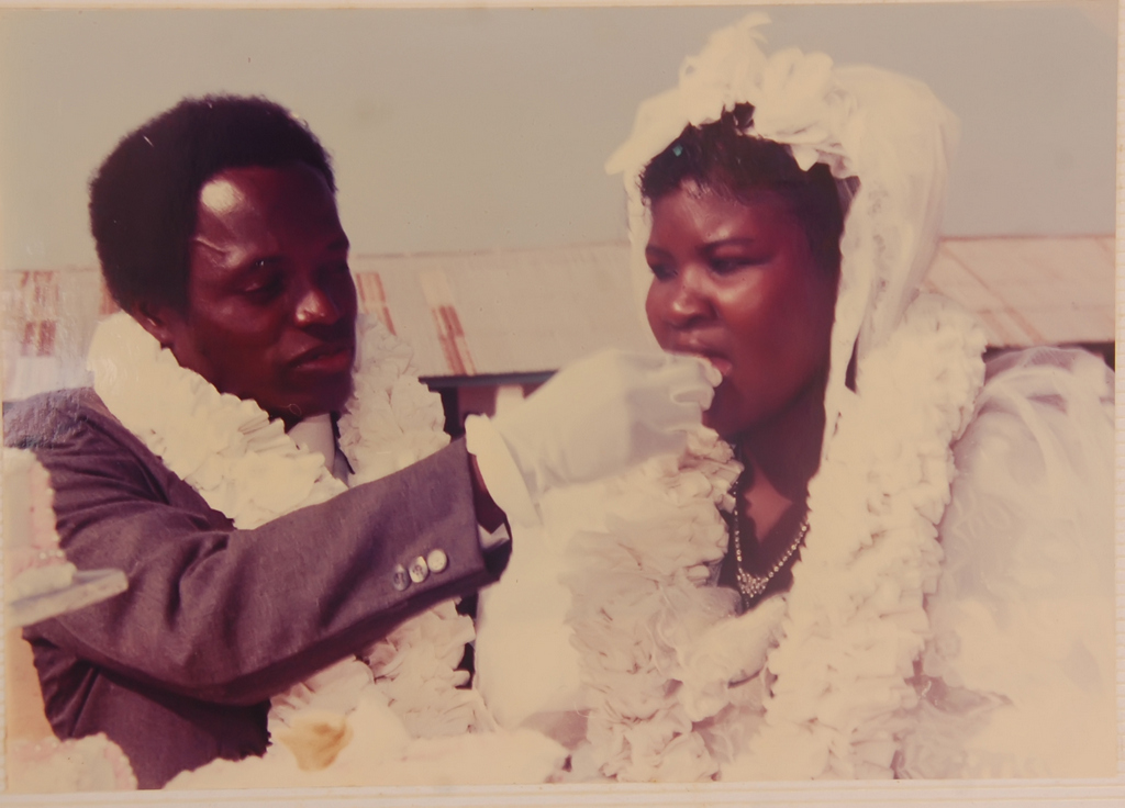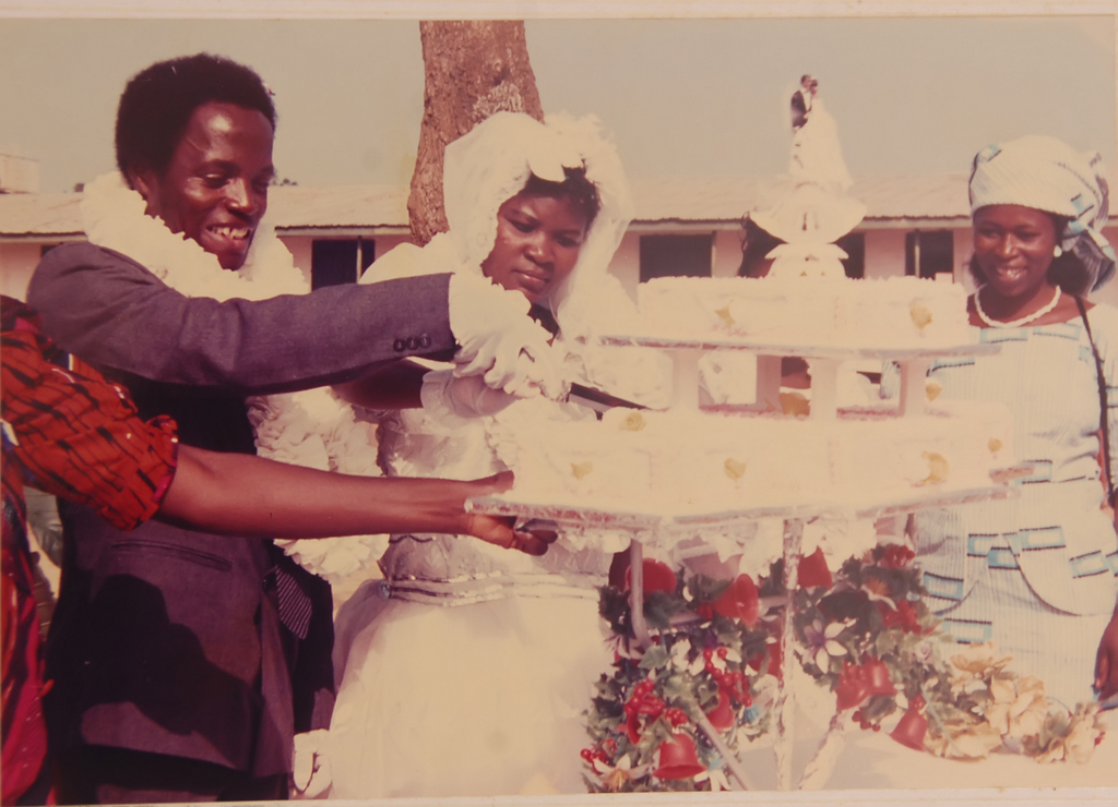 Miss Naomi Nari Audu-Tanwia with Husband Hon James – Rugu cutting the wedding cake