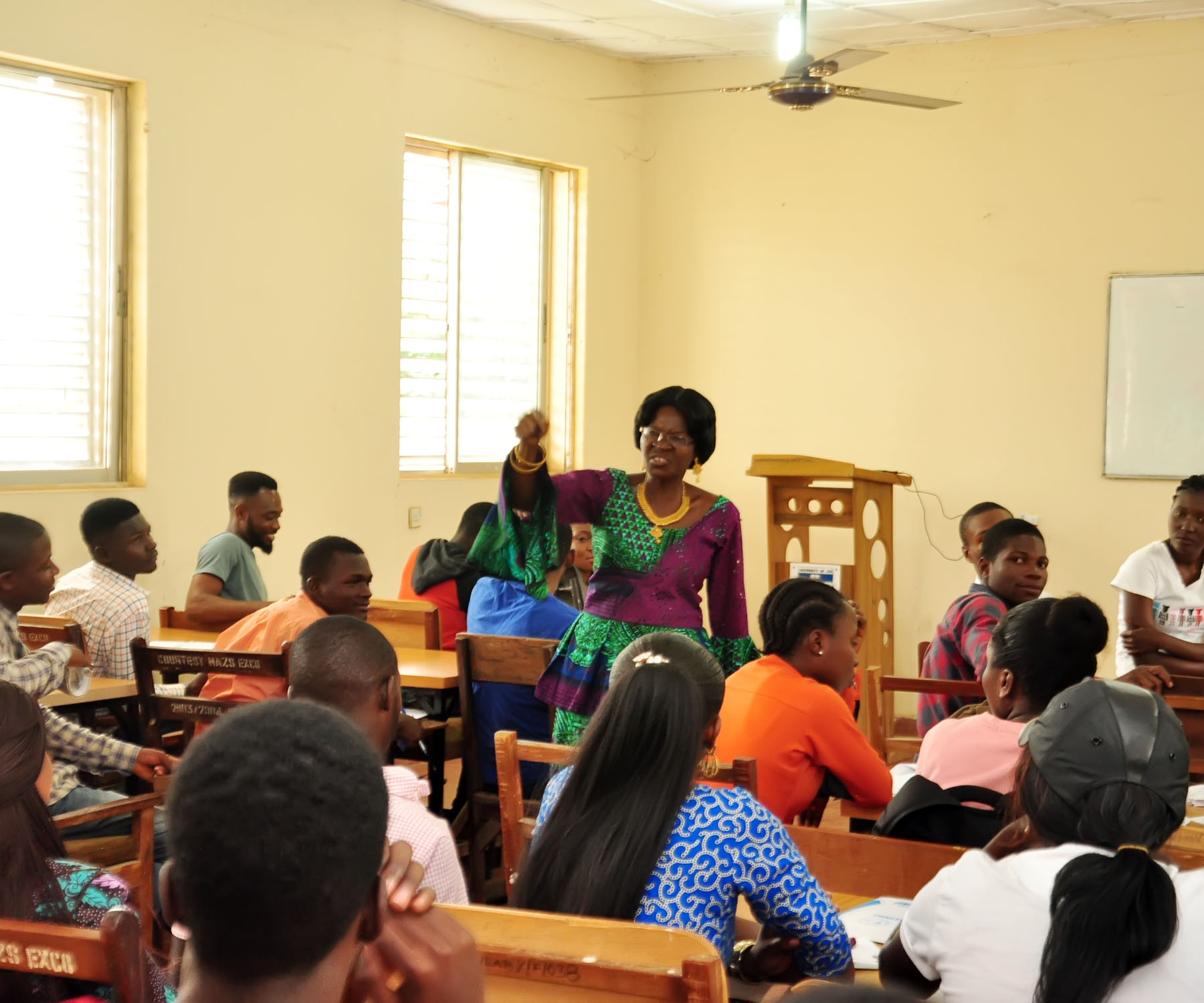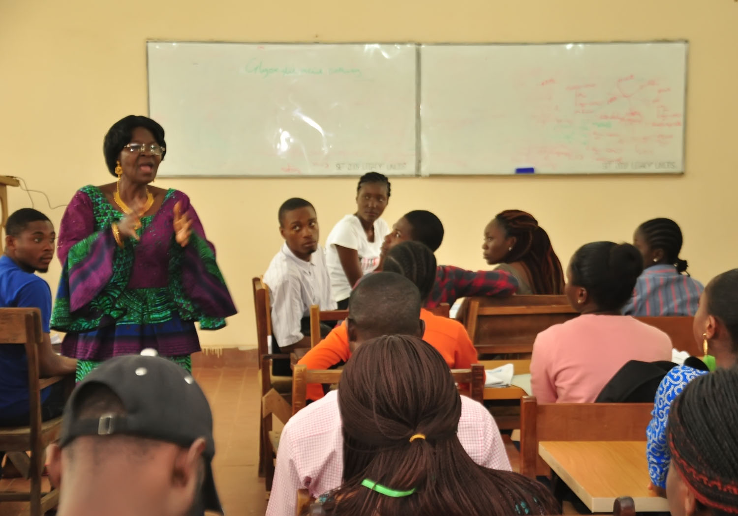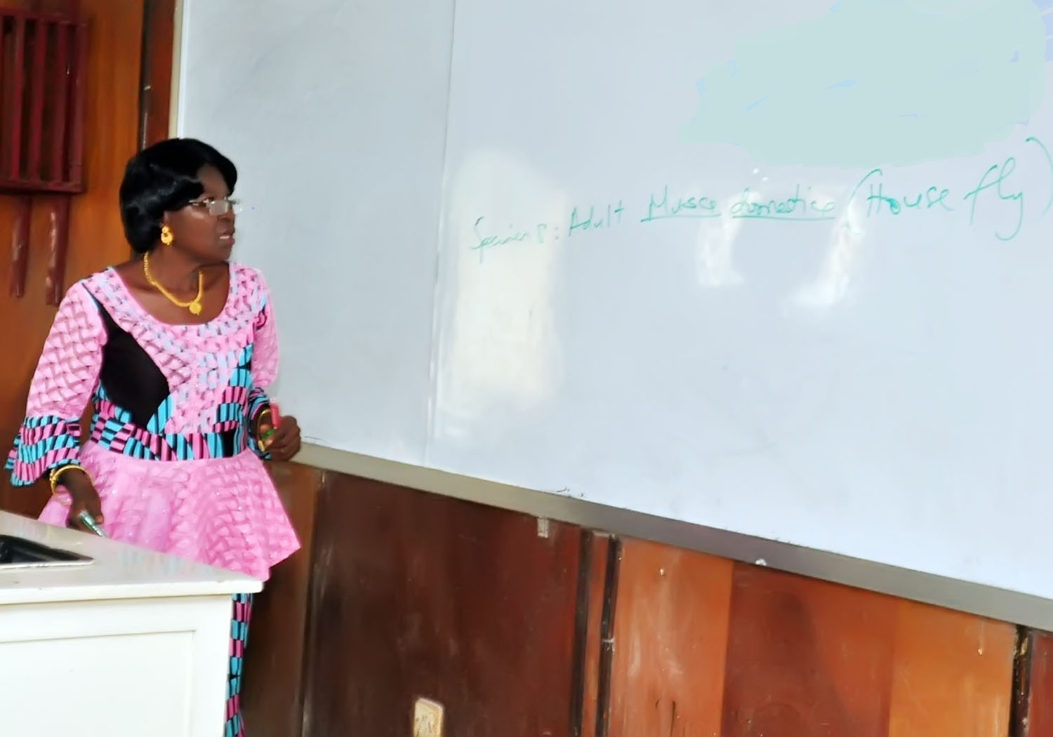 She can be seen teaching Zoo 402 (Applied Entomology in the Zoology Laboratory III in the Department of Zoology. University of Jos.