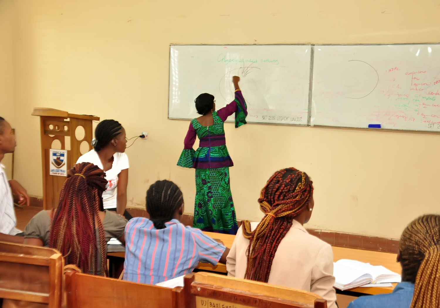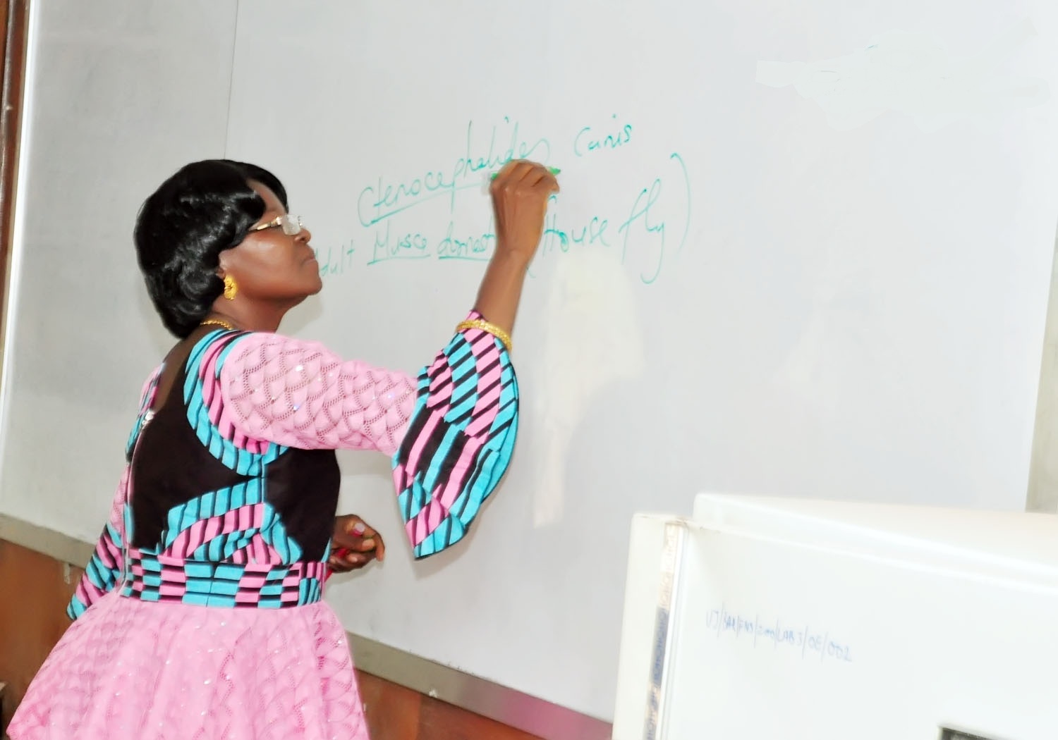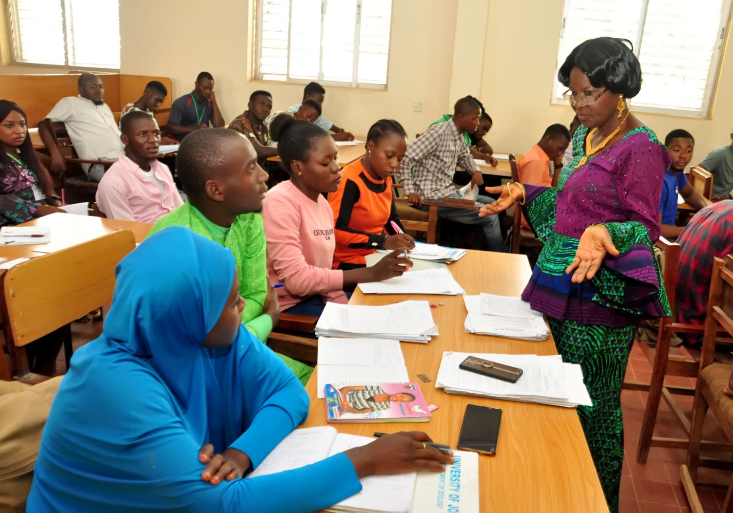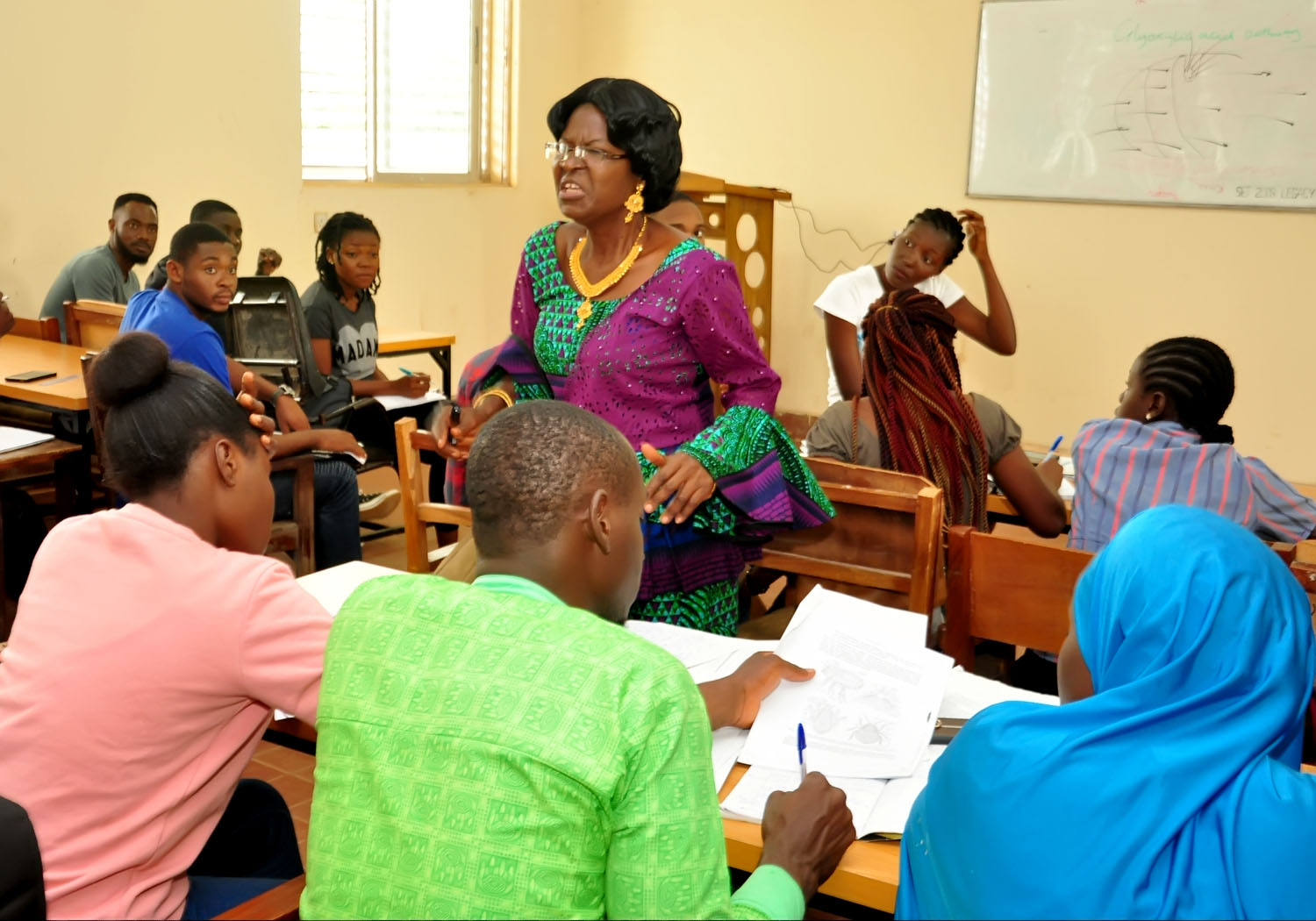 She can be seen teaching Zoo 402 (Applied Entomology in the Zoology Laboratory III in the Department of Zoology. University of Jos.